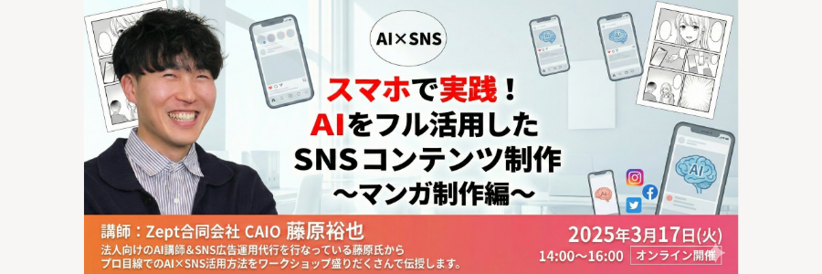 【最新集客セミナー】AI×SNS|スマホで実践! AIをフル活用したSNSコンテンツ制作 〜マンガ制作編〜