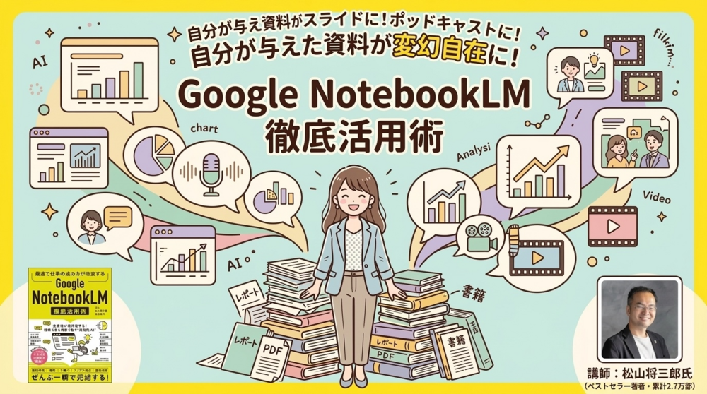 著書『最速で仕事の進め方が激変する Google NotebookLM 徹底活用術』著者。発売直後から注文が殺到し、現在6刷・累計27,000部を突破。全国の書店で完売が相次ぎ、日本のビジネス界に「NotebookLMブーム」を巻き起こした第一人者。